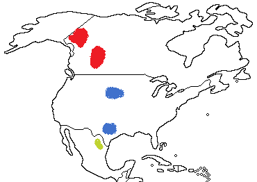 Lugar: Texas, Dakota del Sur (Estados Unidos); Alberta y Beringa Oriental (Canadá); México