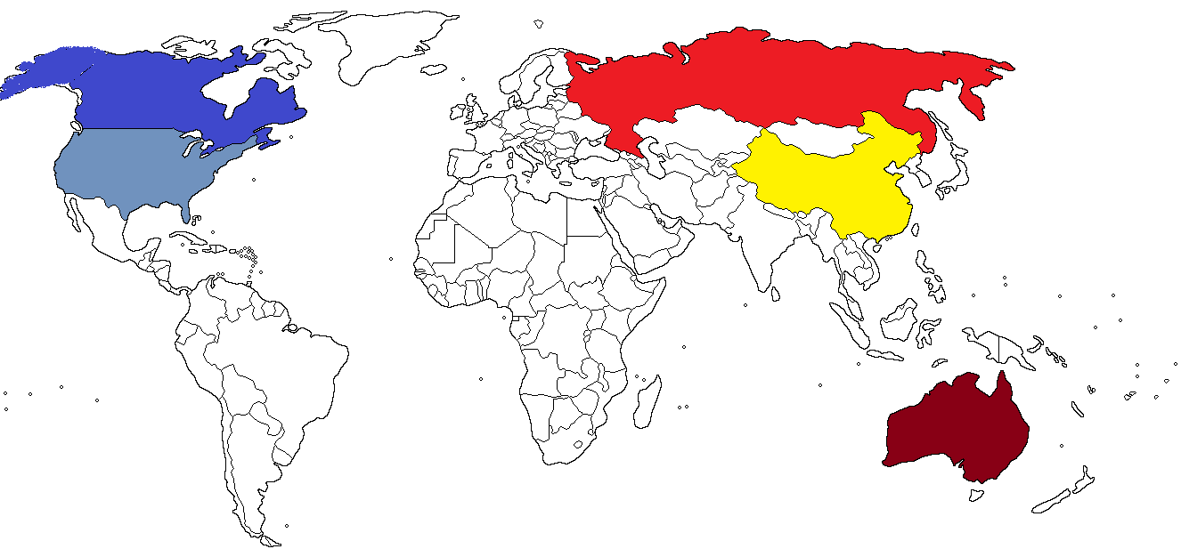 Lugar: Montes Urales, América del Norte, China, Australia occidental